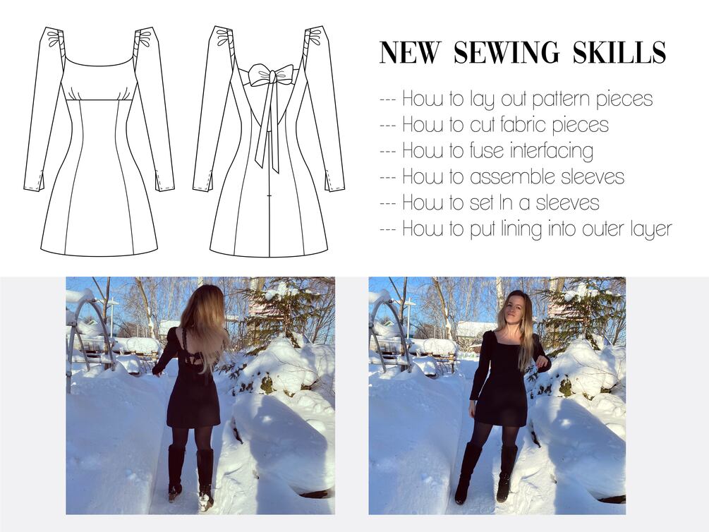PATTERN Black Mini Dress | Pdf sewing pattern | Size xxs/xs/s/m/l/xl/xxl