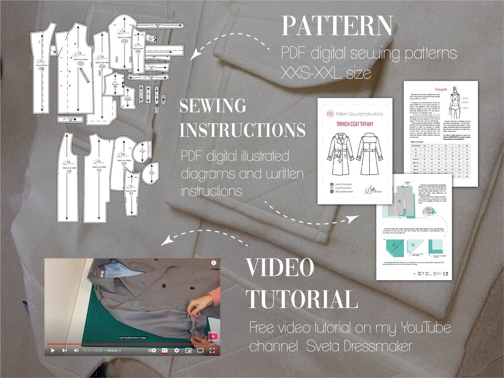 - 1 pdf of patterns for printing on A4 or Letter paper size (TrenchCoat_Tiffany_xxs_xxl_A4_Letter).