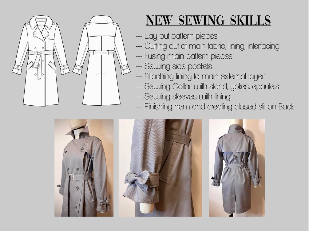 PATTERN Trench Coat Tiffany | Classic Coat | Outerwear Casual Coat | Pdf sewing pattern | Size xxs/xs/s/m/l/xl/xxl